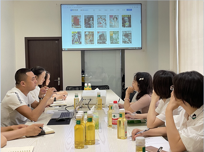 省统计局郭主任一行在观看完博文宣传片和听取博文科技董事长陈攀先生对企业的介绍后,高度评价了博文近年来的发展成绩。陈总首先介绍了博文的基本情况及发展历程,并详细介绍了公司新媒体运营、杂志订阅及鲜花零售三大数字化技术应用版块。陈总表示,经过上市两年多的发展,博文科技已完成了由一家纯粹的杂志订阅企业向业态多元的文化科技企业的转型,未来将继续打造成产业特色鲜明、文化积淀深厚、国内一流的文化产业企业。一页页网站精美画面震撼惊艳,一系列数字化运营技术令人血脉澎湃,另外陈总还展示了博文历来获得的荣誉及具备数字化代表的新榜500强排名,强烈激发了来访领导们的极大兴趣与认可。